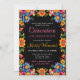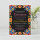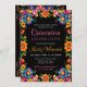Superbe festa mexicaine design floral avec des fleurs rose, bleu et jaune vif sur arrière - plan noir