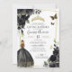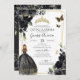 Invitation Quinceañera Papillon floral noir, Fille en robe