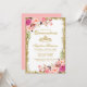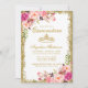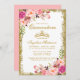 Quinceanera Rose Floral Parties scintillant or et carte d'invitation de la Couronne - Pink Back