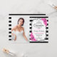 Quinceanera invitation à la fête avec votre photo. Caractéristiques Bandes blanches noires, police de script, roses roses roses blush, tiara et confetti. Design rose pastel noir et blanc avec parties scintillant en argent. Parfait pour une célébration élégante.