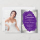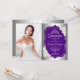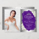 Quinceanera invitation à la fête avec votre photo. Caractéristiques police de script, roses blanches, tiara et confetti. Design violet élégant avec faux argent parties scintillant. Parfait pour une célébration élégante.