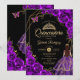 Invitation Quinceanera Purple Gold Butterfly Dress Floral