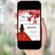Invitation Quinceanera red white dress bow