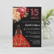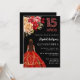 Invitation Quinceanera robe rouge noire floraux roses