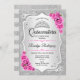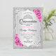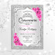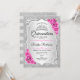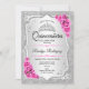 Quinceanera Party - Invitation Argent. Caractéristiques rayures, police de script, roses roses roses, tiara et confetti. Design élégant avec feuille d'argent en fausse parties scintillant. Parfait pour une élégante célébration de glamour.