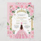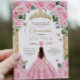 Tout le texte peut être édité pour n'importe quelle occasion. Roses roses roses, fleurs roses, élégante invitation à la quinceanera rose et or, coing rose, invitation à l'anniversaire à la floraison rose.