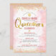 Soyez fiers, réjouissez-vous et mettez en valeur le Quinceañera, ce jalon important pour votre fille, avec cette invitation personnalisée et sophistiquée ! Envoyez cette invitation de fête étonnante, simple, festive et moderne pour un événement inoubliable. Une écriture calligraphique en faux foil doré scintillant et de petits points de confettis pailletés, ainsi qu'une typographie sans serif rose foncé, se superposent sur un fond aquarelle rose clair et doux. Personnalisez le texte personnalisé avec le nom de votre fille ainsi que d'autres détails sur l'église et le lieu de la fête. Idéal pour la jeune fashionista en herbe qui aime le glamour et les paillettes modernes et qui est garanti d'ajouter une touche de style amusant à son jalon spécial !