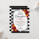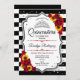 Invitation à la célébration de la Quinceanera en argent noir et blanc. Caractéristiques rayures, police de script, tournesol, roses rouges, tiara et confetti. Design élégant avec fausse parties scintillant argent. Parfait pour une élégante célébration de glamour.