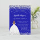 Une invitation moderne, élégante et glamour pour une Quinceañera, 15ème anniversaire. Un arrière - plan bleu royal avec un faux Silver Confetti, une fille portant une robe de bal. Le nom est écrit avec un script de style moderne écrit à la main. Personnalisez et ajoutez les détails de votre fête.