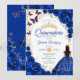 Invitation Quinceanera Royal Blue Gold Floral