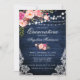 Rustique Bleu Chaîne Lumière Dentelle rose Aquarelle Blush Floral Quinceanera Invitation