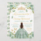 Invitation Quinceañera Sage Green Princess Brunette Girl
