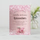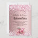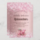 Un arrière - plan à dégradé rose vif décoré de faux scintillants roses, de confettis et d'un chariot vintage romantique. Personnalisez et ajoutez son nom, les détails de la fête.