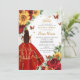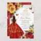 Personnalisez facilement et rapidement cette invitation vibrante à fleur de soleil et de rouge Quinceañera / Sweet 16 anniversaire. Cliquez simplement sur le bouton Modifier à l'aide des outils de conception pour modifier le texte, modifier les styles de police et les couleurs de police. Doté d'une fille habillée d'une belle robe rouge, d'élégantes fleurs rouges, de tournesols vibrants et de papillons rouges et or. Les papillons, coince fille et couronne sont mobiles, redimensionnables, multipliables et amovibles. Customisez-le pour convenir à votre occasion. Objets correspondants disponibles en magasin. c) Somerset Fine Paperie par The Happy Cat Studio.