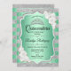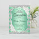 Quinceanera invitation à la fête. Design élégant en vert émeraude et faux argent parties scintillant. Il comprend des bandes, des caractères de script, des roses, des tiaras et des confettis. Idéal pour une élégante princesse glam style 15ème anniversaire célébration. Invitations Zazzle imprimées ou téléchargement instantané modèle imprimable numérique.