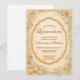 Un design côtier romantique avec des coquillages délicats, des étoiles de mer, des florales de corail doux et une verdure côtière ondoyante entourant un cadre orné élégant. Les illustrations à l'aquarelle et le fond parchemin antique chaud créent une esthétique de jardin de plage intemporel inspirée par les impressions botaniques vintage et le charme de l'océan. Parfait pour une célébration côtière raffinée avec une élégance côtière douce.