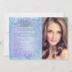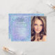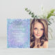 Cartes d'invitation Quinceanera violet et sarcelle bleue paysage hivernal gelé avec de beaux flocons de neige violets et sarcelle bleus sur un joli fond aquarelle violet et sarcelle. Cette élégante invitation Quinceanera bleue et violette est facilement personnalisable pour votre événement en ajoutant simplement votre photo et les détails de l'événement dans le style de police et la couleur et le libellé de votre choix. Il s'agit d'un design imprimé sans véritable paillettes, bijoux, etc.