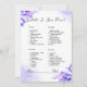 Élevez la joie de votre douche nuptiale avec notre délicieux jeu, "What's in Your Purse". Cette activité engageante promet rires et camaraderie pendant que vos invités plongent dans leurs sacs pour trouver des objets valant entre 5 et 20 points. Placé contre un arrière - plan blanc immaculé et orné de chatoyantes aquarelles violettes, de délicates fleurs violettes et d'une végétation luxuriante, ce jeu apporte une touche d'élégance et de plaisir à votre célébration spéciale. L'expression "What's in Your Purse" est magnifiquement rendue dans une jolie police de caractères noire moderne, servant d'invitation irrésistible à vos invités à participer. À mesure que vos participants retirent les objets de leurs sacs, les objets de jeu sont élégamment affichés dans une simple police de bloc noir, assurant clarté et facilité d'utilisation. Les mots "nom" et "total", accompagnés de lignes fluides gracieusement dans une jolie police de caractère noir, apportent une touche sophistiquée au design. La combinaison d'un cadre blanc serein et d'une aquarelle violette fascinante, complétée par des fleurs violettes délicates et de la verdure, crée une esthétique visuellement captivante et harmonieuse. Cette toile de fond sert de point focal délicieux, insufflant votre douche nuptiale avec un éclat de couleur et de beauté. Améliorez votre expérience de la douche nuptiale avec le jeu "What's in Your Purse", un mélange parfait de divertissement et d'interaction. Dans un décor de toile blanche très design, ornée d'une aquarelle violette séduisante et de motifs floraux complexes, ce jeu offre à vos invités une occasion inoubliable de se lier et de partager le rire. Ajoutez une touche de magie à votre célébration avec ce jeu captivant qui capture l'essence de la joie et de la convivialité.