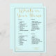 Élevez la joie et la camaraderie de votre douche nuptiale avec le jeu captivant "What's in Your Purse". Placé contre un arrière - plan bleu cyan clair rafraîchissant, ce jeu ajoute une touche de vitalité et de plaisir à votre célébration, créant une atmosphère de rire et de délicieuses surprises. En écoutant dans une police de script doré captivante, les mots "What's in Your Purse" invités invitations pour embarquer dans un voyage passionnant à travers leurs sacs à main. À mesure qu'ils découvrent un ensemble de trésors cachés, chaque élément révèle une valeur ponctuelle distincte, allant de 5 à 20 points. Cette astuce sur un jeu classique apporte un élément de compétition amicale et d'amusement partagé à votre événement. Avec les éléments de jeu présentés dans une police de caractères noir propre et gras, la lisibilité et l'accessibilité sont assurées pour tous les participants. Le "nom" et le "total" étiquette, ornés d'une gracieuse police dorée cursive, ainsi que les lignes qui l'accompagnent, dégagent un sentiment de sophistication qui s'ajoute à merveille à l'esprit festif. Bordé d'un cadre noir classique, le jeu "What's in Your Purse" ajoute une touche d'élégance intemporelle à votre décor de douche nuptiale. Au-delà de sa valeur de divertissement, le jeu encourage les liens puisque les clients partagent des histoires sur leurs trouvailles et surprises uniques. Créez une douche nuptiale inoubliable en introduisant le jeu "What's in Your Purse". Au milieu du rire et de la compétition amicale, cette expérience favorisera des liens et fera des souvenirs qui dernier une vie. Avec son design captivant et sa prémisse enchanteresse, ce jeu promet un ajout engageant et enchanteur à votre célébration.
