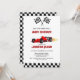 exquise Cute course voiture thème baby shower carte d'invitation avec voiture antique bleue avec flammes illustration