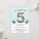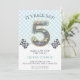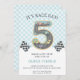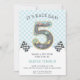 Playful pastel racetrack shaped as number five with colorful cars and checkered flags. A sweet watercolor design perfect for a boy’s fifth birthday celebration.
