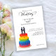 Un gâteau mariage arc-en-ciel à la fois simple et étonnant avec deux marionnettes au sommet avec une typographie de script étonnante. Vous pouvez personnaliser ces invitations avec vos propres détails. Annoncez votre grand jour est élégant style avec ces invitations de Ricaso. Ajoutez vos propres informations personnelles.