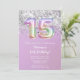 Parties scintillant étincelante arc-en-ciel invitation pour une fille de 15 ans avec écriture de script élégante et des ballons amusants en feuille de papier.