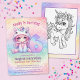 Invitation Rainbow Unicorn chibi girly 6e anniversaire