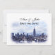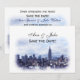 Ensemble d'invitation stylisé et rêveur avec vue sur la skyline de New York en bleu marine : - Enregistrez la date ========
