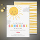 Moderne un petit rayon de soleil baby shower avec un soleil coloré heureux et la typographie. Personnalisez ce design avec vos propres informations et faites-le vraiment unique. Illustré et dessiné par Patricia Alvarez.