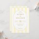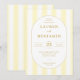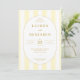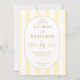 Cette élégante invitation de mariage présente une mise en page verticale classique avec un cadre ovale bordé de fines lignes dorées, sur fond de rayures alternées jaune pâle et blanc. Le design utilise une palette de couleurs raffinée composée de jaunes doux, de blancs et de dorés, créant une atmosphère chaleureuse et accueillante. Avec une impression numérique nette et une typographie serif précise, l'invitation dégage sophistication et formalité, parfaite pour célébrer un événement important. Son approche minimaliste se concentre sur une composition structurée et un équilibre, ce qui en fait un choix idéal pour ceux qui recherchent la simplicité associée à l'élégance.