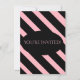 Ce design d'invitation cool présente de larges rayures roses et noires sur le devant avec une forme ovale noire et les mots "Vous êtes invités !" en rose au centre de l'ovale. Le dos est rose avec du texte noir dans une police correspondante et dit "Veuillez nous rejoindre pour célébrer" et des lignes supplémentaires pour que vous puissiez ajouter vos détails. Changez le texte à votre guise. Celles-ci seraient parfaites pour l'anniversaire d'une dame qui passe le cap !
