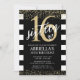 Ces invitations rayures noires et blanches avec or sont parfaites pour n'importe quel anniversaire ! Changez l'âge pour honorer votre invité d'honneur pour son jour spécial.