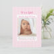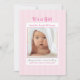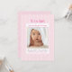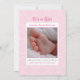 Présentez votre nouveau bébé à votre famille et à vos amis avec cette jolie annonce de naissance qui présente des rayures roses sur le devant et un motif coordonné au dos, deux emplacements pour inclure des photos de votre petit trésor, et un nom de bébé personnalisable, la date et l'heure de naissance, le poids, le nom des parents, et un texte qui annonce "C'est une fille". Ajoutez vos propres photos et modifiez le texte pour créer une annonce de naissance unique. Ce design classique et minimaliste mettra en valeur votre beau bébé.