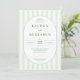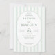 Cette élégante invitation de mariage présente un design classique avec des rayures vert clair verticales sur un fond vert plus foncé, créant un look frais et sophistiqué. Le cadre ovale central met en valeur les détails de l'événement dans une police serif claire, soulignant la clarté et la formalité. Parfaite pour les couples recherchant une esthétique intemporelle, cette invitation dégage une atmosphère d'élégance et de raffinement, ce qui la rend idéale pour les célébrations formelles. Son approche minimaliste se concentre sur la typographie, garantissant que toutes les informations essentielles sont présentées de manière magnifique sans distractions.