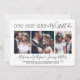 Si des circonstances inattendues ont causé un report de votre réception de mariage, le premier anniversaire est une occasion parfaite de célébrer un an plus tard. Famille d'Invitations et amis à une soirée 1er anniversaire tout simplement élégante avec cette élégante invitation de collage photo moderne 4. Tout libellé est simple à personnaliser, y compris une citation qui dit "un an plus tard nous le faisons encore". Customisez le temps qui s'écoule entre la cérémonie du mariage et la fête de l'anniversaire, que ce soit quelques mois ou quelques années. Inclure toutes les informations de votre choix, telles que la date du mariage, les plans de renouvellement de voeux, les détails de la fête post-élopement, l'emplacement de la cérémonie du mariage de suite, le code vestimentaire, rsvp, le site Web, etc. (CONSEIL EN MATIÈRE DE PLACEMENT DE L'IMAGE : Une façon simple de centrer une photo exactement comment vous voulez, c'est la rogner avant de télécharger sur le site Zazzle.) Le design moderne minimaliste noir et blanc présente quatre images des mariés, une calligraphie manuscrite branchée et une typographie chic de style machine à écrire. Que vous soyez parti, que vous ayez eu un minimalisme réduit ou un micro-mariage, ou que votre fête spéciale de jour devait être reprogrammée en raison d'un report lié à une pandémie, le heureux jamais après la fête peut encore commencer. Félicitations à la mariée et au marié !