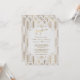 Invitation de réception élégante Gatsby le Magnifique Art Déco Or et Blanc. Un design de carte inspiré des années 1920 en blanc et or présente de beaux motifs géométriques de style Art Déco sur fond texturé blanc. Utilisez l'outil de personnalisation pour ajouter vos informations. Voir également ma collection de mariage Art Déco Gatsby le Magnifique Blanc.