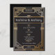 Classique et sophistiqué, Noir et Or dans le style Art Déco des années 20 rugissantes, Roaring Twenties Gatsby Style Vintage et élégant, avec un thème "Great Gatsby" des années 1920 dans les tons noir et or. Un arrière - plan noir met en valeur le design et le lettrage complexes de style Art Déco géométrique, créés dans un dégradé d'or.