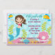 Cette invitation de fête d'anniversaire de réception au bord de la piscine comporte une belle sirène et une huître avec une grande perle blanche sur le fond de la mer et les gisements personnalisables des textes pour votre information de partie.
