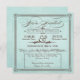 Cette belle invitation de mariage au format carré de couleur bleu écume de mer pâle, avec un texte marron chocolat a une atmosphère vintage, rétro avec une conception de lettrage à l'ancienne, y compris des éléments de script élaborés, une bannière décorative, des étoiles et une esperluette en spirale. L'invitation chic est inspirée à la fois par le design vintage et les affiches élégantes. Le texte se lit comme suit : "Vous êtes invités à la réception de mariage de [nom personnalisable] & [nom personnalisable] [date personnalisable] [heure personnalisable]. Rejoignez-nous pour une célébration inoubliable". Personnalisez davantage l'invitation avec les informations de réception et l'adresse, dans la boîte avec une bordure en pointillés.