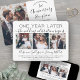 Si des circonstances imprévues ont entraîné un report de votre réception de mariage, le premier anniversaire est une occasion parfaite pour célébrer un an plus tard. Invitez famille et amis à une fête élégante et simple pour le 1er anniversaire avec cette invitation moderne et stylée en collage de 4 photos. Tout le texte est facile à personnaliser, y compris la citation qui dit "un an plus tard, la célébration du mariage commence". Personnalisez la période entre la cérémonie de mariage et la fête elle-même, qu'il s'agisse de quelques mois ou de quelques années. Incluez toutes les informations de votre choix, telles que la date du mariage, les plans de renouvellement de vœux, les détails de la fête post-fuite, le lieu de la cérémonie de mariage suivante, le code vestimentaire, la réponse, le site web, etc. (ASTUCE DE PLACEMENT D'IMAGE : Un moyen facile de centrer une photo exactement comme vous le souhaitez est de la rogner avant de la télécharger sur le site de Zazzle). Le design moderne minimaliste noir et blanc présente quatre photos des jeunes mariés, une calligraphie script manuscrite tendance et une typographie élégante de style machine à écrire. Que vous ayez fugué, organisé une minimony ou un micro-mariage plus petit, ou que votre célébration de jour spécial ait dû être reprogrammée en