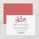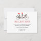 Carte de réception élégante avec une belle bicyclette tandem et deux cœurs rouges.