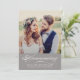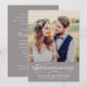 Créez une apparence élégante et polyvalente pour annoncer votre mariage et inviter vos invités à votre réception de mariage avec cette invitation photo calligraphiée grise en étain. Une bannière chaude en étain présente "Annonce" en écriture blanche élégante avec les noms, la date et le lieu. Le verso comprend tous les détails de la réception avec le lieu, l'heure et les informations de contact RSVP. Remplacez la photo et personnalisez tout le texte.