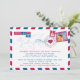 Une réception de mariage post-mariage créative et amusante à envoyer à tous vos invités pour annoncer votre mariage de destination. Ligne pointillée avec des cœurs allant du Missouri, États-Unis au Royaume-Uni. Ajoutez votre photo préférée en tant que conception de timbre ! Si vous avez un emplacement différent, veuillez me le faire savoir et je vais en configurer un pour cet emplacement. email paula@labellarue.com