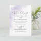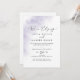 Cette invitation de réception de fuite en lavis d'aquarelle violette est parfaite pour une fête moderne après une fuite. Le design simple et classique présente une touche de couleur lavande pastel avec un style élégant minimaliste. Les cartes de RSVP sont vendues séparément, ou vous pouvez ajouter les informations de RSVP au verso de la carte.