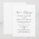 Cette invitation de réception de fuite en calligraphie noire délicate est parfaite pour une fête moderne après une fugue amoureuse. Le design minimaliste romantique présente une typographie noire élégante et charmante sur fond blanc avec une apparence propre et simple. Les cartes de RSVP sont vendues séparément, ou vous pouvez ajouter les informations de RSVP au verso de la carte.