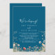 Cette carte de réception de fleur sauvage de la marine est parfaite pour une soirée post-elopement moderne. Le design est composé de fleurs sauvages de prairie roses, violettes, rousses, jaunes, bleues poussiéreuses, rouges, bordeaux, assemblées dans un motif floral transparent et délicieux, évoquant la beauté naturelle. Les cartes RSVP sont vendues séparément.