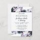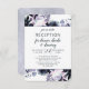 Conception florale luxuriante à l'aquarelle nocturne avec tiges, vignes, feuilles, feuillage peints à la main. Bleu marine coloré, bleu poussiéreux, gris foncé presque noir et touches de rose mauve. Avec des éléments de ligne dessinés à la main, polices de script de pinceau chic en spirale, cadre en feuille d'argent pailleté et bordure florale élégante - Invitation à la réception de mariage !
