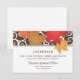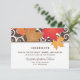 Invitez les invités à la célébration avec cette carte de réception d'automne présentant une bannière vibrante de feuilles d'érable rouges, orange et dorées sur un riche travail de défilement marron. Le titre gras "Célébrez" présente les détails du cocktail et du dîner avec un espace pour le nom et l'adresse du lieu. Modifiez tout le texte pour qu'il corresponde à vos plans de soirée de mariage d'automne.