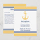 Carte de réception de mariage à thème d'ancre nautique jaune et bleu marine avec directions.